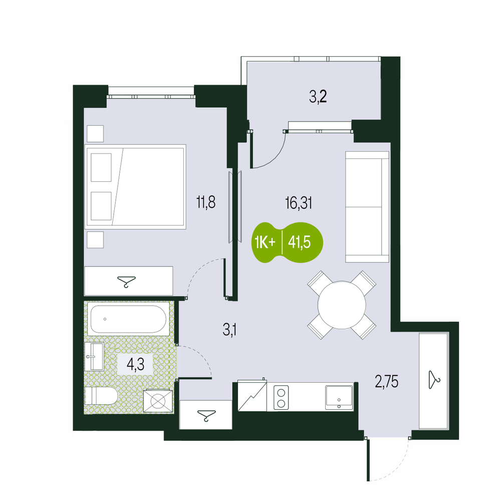 - № 441Секция 1.4, Секция 1, Этаж 11