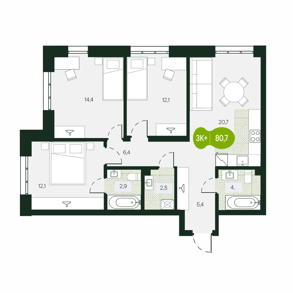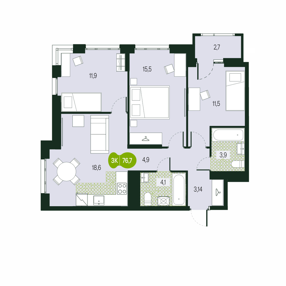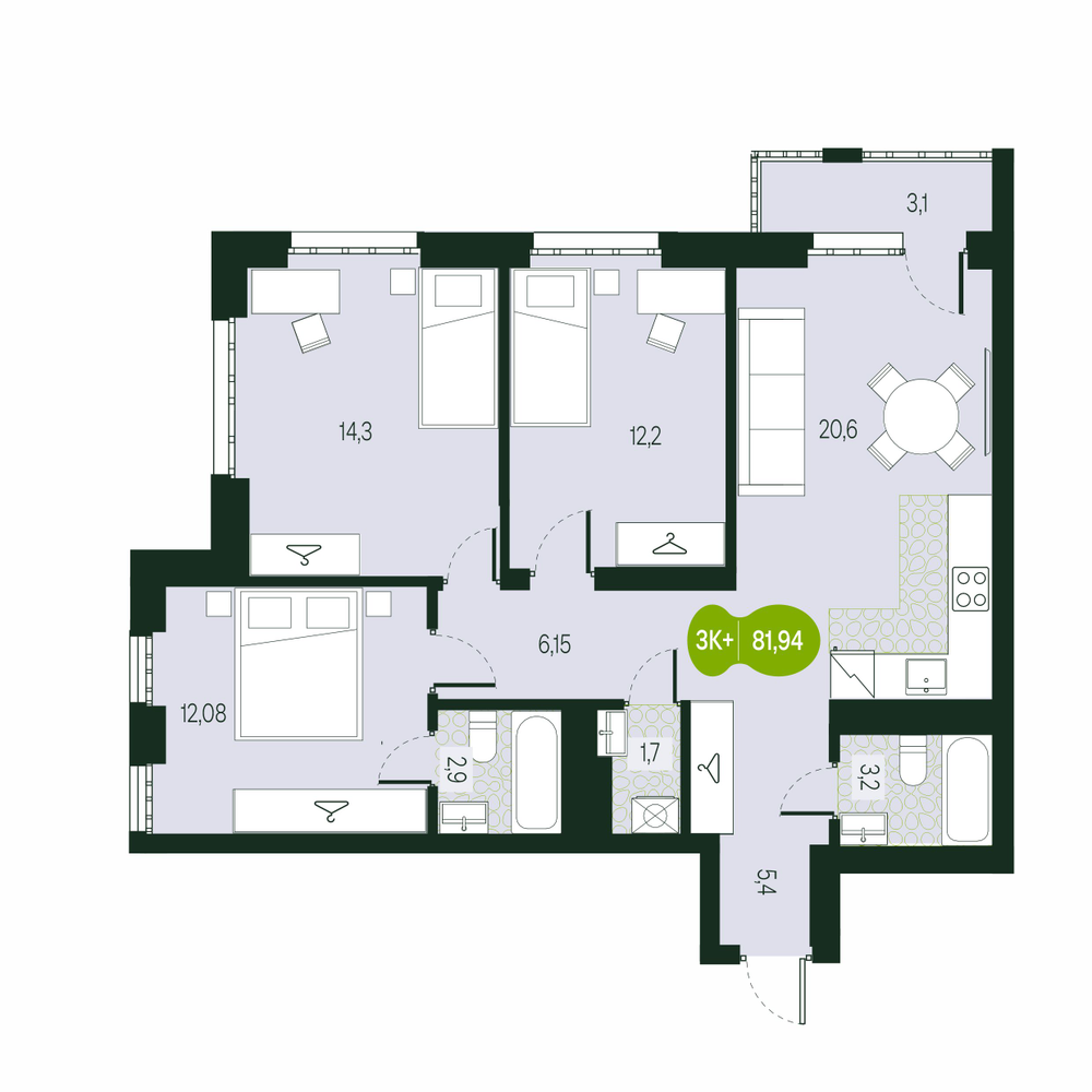 - № 135Секция 1.1, Секция 1, Этаж 14