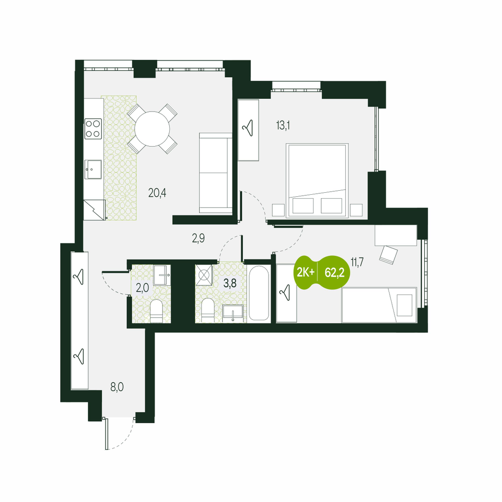 - № 124Секция 1.1, Секция 1, Этаж 13