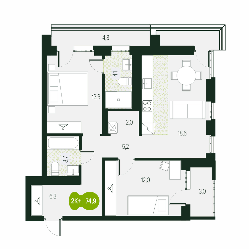 - № 452Секция 1.4, Секция 1, Этаж 12