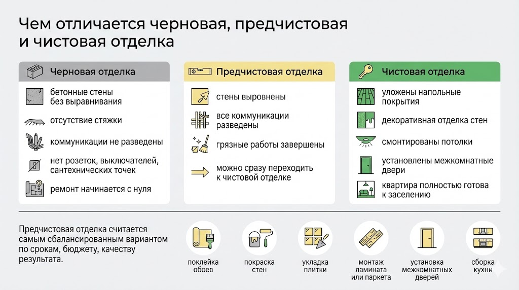 Чем отличается от черновой или чистовой отделки